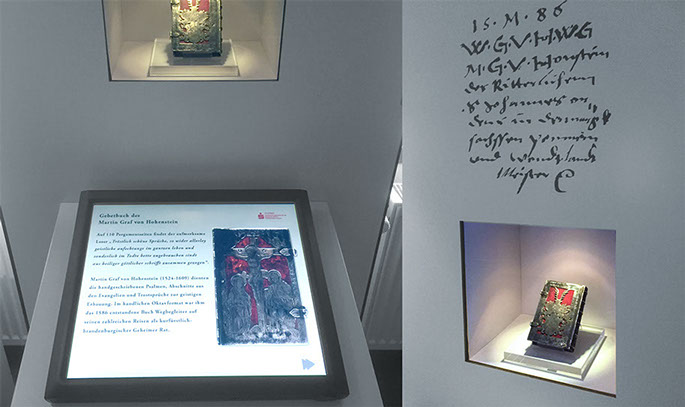 Im Mittelpunkt der Ausstellung steht das Gebetbuch des Martin Graf von Hohenstein.